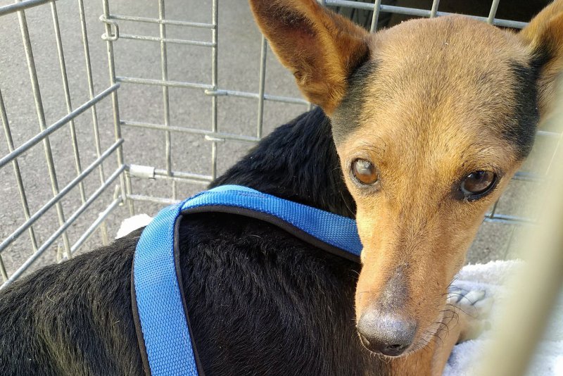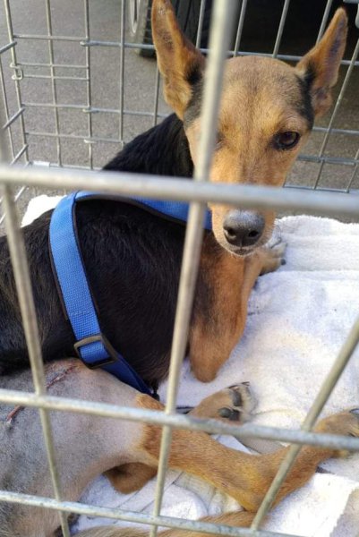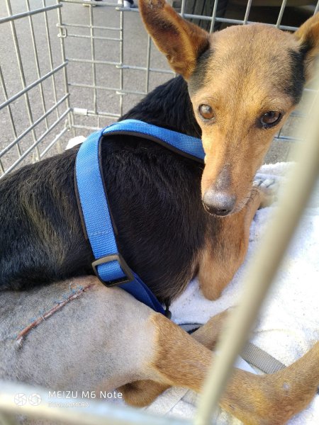 We kregen een telefoontje van enkele mensen die ons vertelden dat er al enkele maanden een hond in het gebied rondzwierf en nu hadden ze gezien dat hij niet kon lopen, dat hij liet zien dat hij pijn had en niet wilde dat iemand hem benaderde. Toen onze geweldige collega's Loles en Sara op de aangegeven plaats aankwamen vonden ze hem, erg bang en met veel pijn. Met hulp van de omwonenden en een paar tuinmannen kon hij gepakt worden en in de auto worden gezet op weg naar de dierenarts voor alle onderzoeken. Hij had een gebroken dijbeen, voorbeenletsel en een ooginfectie, verder was hij uitgedroogd en erg ondervoed. Kortom een erg lastig vooruitzicht en hij werd opgenomen in de dierenkliniek. Zoals verwacht heeft Lukas geen chip en heeft er ook niemand zich voor hem gemeld.