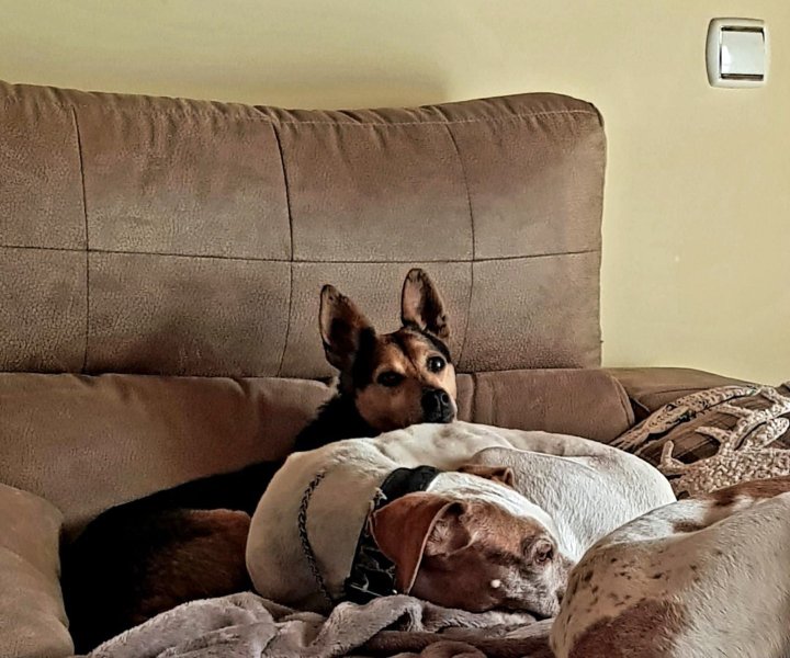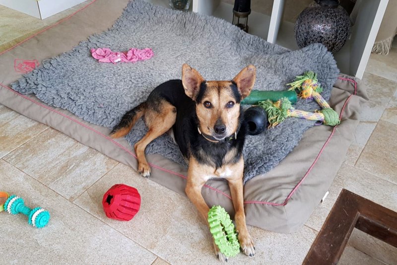Opa Lukas is zowel fysiek als emotioneel zeer goed hersteld. Hij geniet nu van het leven, wordt graag vertroeteld en geaaid door medevrijwilligers, speelt met andere honden, doet ook graag dutjes want hij heeft hij een rustig karakter.