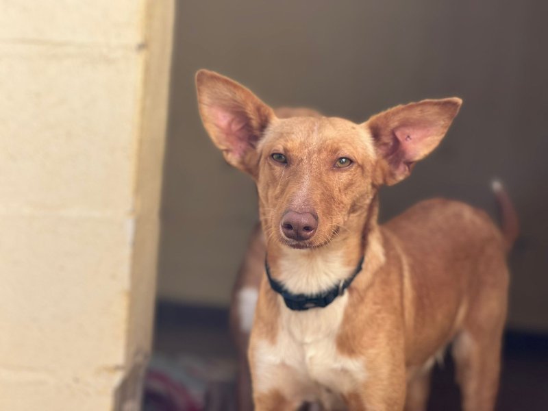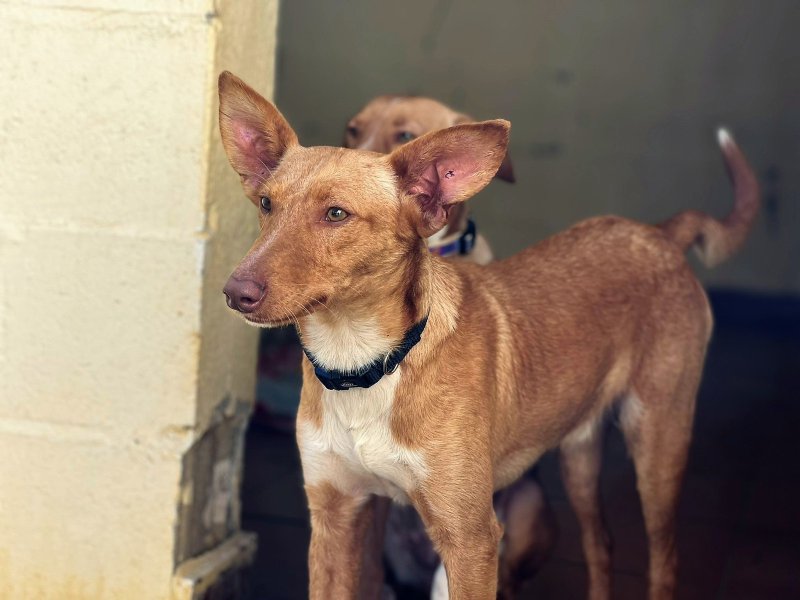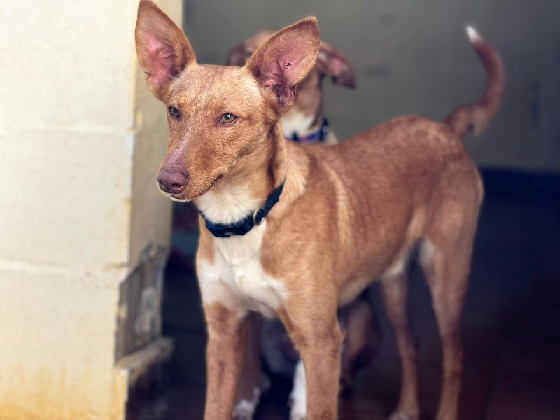 Mowgli is prachtig, een beetje verlegen misschien in de eerste minuten als hij je niet kent, heel vriendelijk, speels en soms zelfs een beetje brutaal. Ze zijn beide hele leuke Podenco’s, en ook goed met andere honden. We hebben ze samen gered en ook met hun zusje Vega, zij is al geadopteerd en woont in Luxemburg. Maar de broertjes zijn te lang gebleven, meer dan een jaar is te veel voor een leven in een asiel, arme broertjes, ze zijn zo lief.
