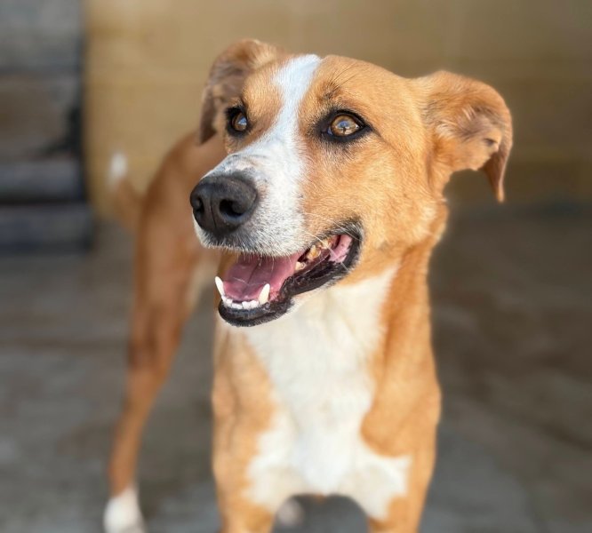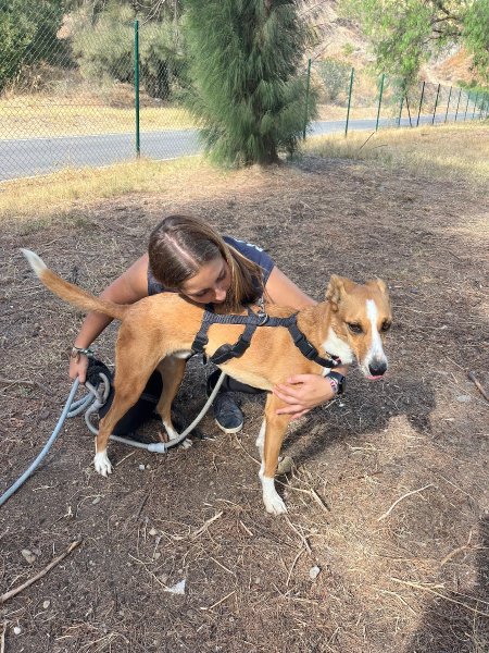 Input 1 september 2023: Deze prachtige podenco is León. Hij kwam aan toen hij nog maar net 11 maanden oud was, totaal doodsbang en niet wetend wat er gebeurde. Zijn ogen weerspiegelden de pure angst en paniek van alles om hem heen. Hij gromde naar ons, blafte, huilde... hij wilde zich gewoon onzichtbaar maken om niet nog eens gewond te raken.