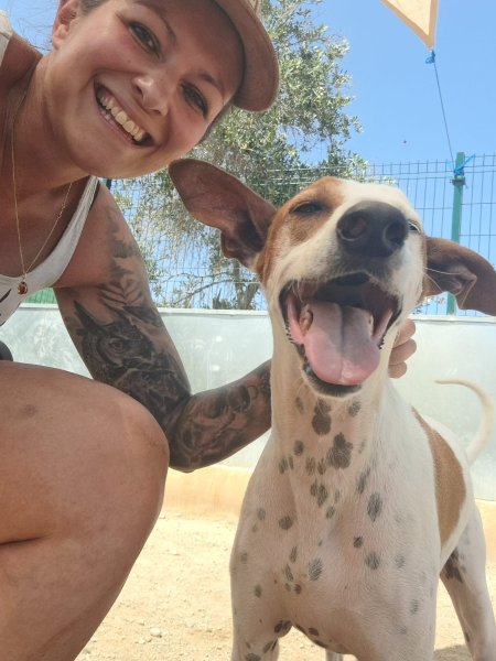 (Input 13 december 2023): Kaleb is een zeer vriendelijke jonge hond die samen met zijn broertje Kaden werd gevonden. Hij was erg vermagerd en zat onder de vlooien. Na een heerlijk bad en een goede maaltijd kwam hij helemaal los. Kaleb is een super vriendelijke jongen die graag de aandacht krijgt. Hij komt graag bij je zitten om gekroeld te worden. Hij zit in een groep met zowel reuen als teven en dit gaat allemaal goed, soms kan hij wel eens de baas willen zijn maar de anderen maken hier snel een einde aan. Kaleb gaat heel graag mee wandelen, dit doet hij ook al goed, en nieuwgierig loopt hij dan alles te besnuffelen. Kaleb is leergierig en leert snel maar hij kan ook nog wel eens kattenkwaad uithalen, hij is erg speels nog.