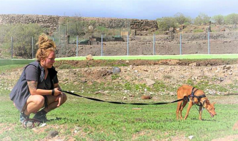 Ze loopt dus buiten heerlijk mee aan de lijn en dan ook genietend als een “normale” hond. Ze is dan zelfs zo nieuwsgierig en afgeleid dat ze haar angsten haast vergeet. Heerlijk bezig met haar omgeving en de nieuwe geurtjes.