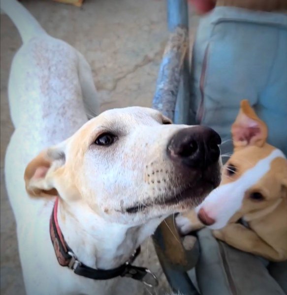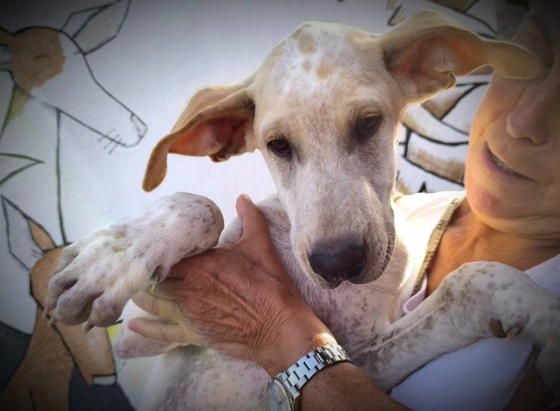 Eenmaal in het dorp merkten we dat deze schat zeker nog begeleiding zal nodig hebben om die grote buitenwereld te ontdekken. Verkeer, drukte, lawaai, dat was toch wel veel opeens. Jules is natuurlijk alleen de finca gewend. Dit is zeker niet niks want hij heeft de beste socialisatie gehad met elk type honden en kent hierdoor de hondentaal als de beste. Jules kan met alles en iedereen goed. Mensen, groot en klein, maar ook heel veel dieren kent hij en is hij gewoon: katten, fretten, schapen, paarden, ezels... Super gewoon!