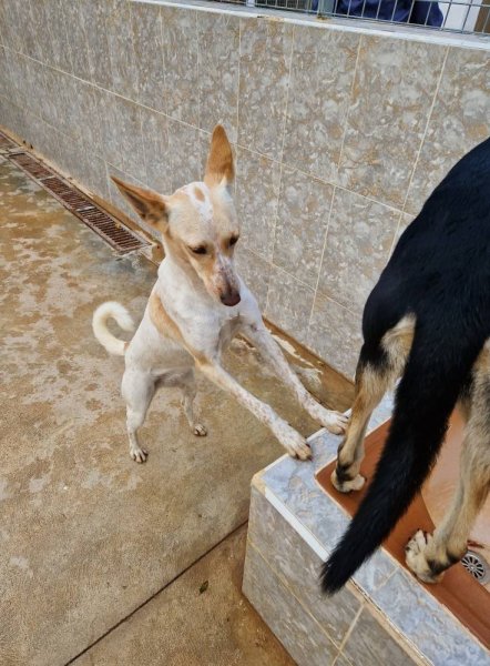 Input 6 november 2024: Onze mooie verlegen Paloma werd in april 2023 gevonden terwijl ze rondzwierf in de straten van een klein dorpje in Andulusia. Ons toegewijde reddingsteam werd opgeroepen om een vangkooi te plaatsen in de hoop dat ze haar konden redden van de onbekende wrede wereld. Na verschillende pogingen lukte het om haar in de kooi te krijgen en toen ze eenmaal veilig was, werd ze naar de GPAR-opvang gebracht.