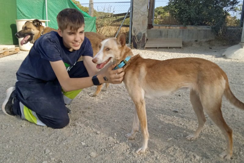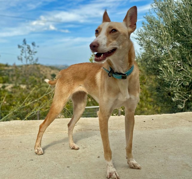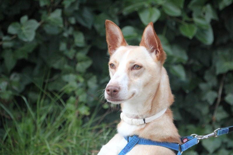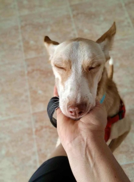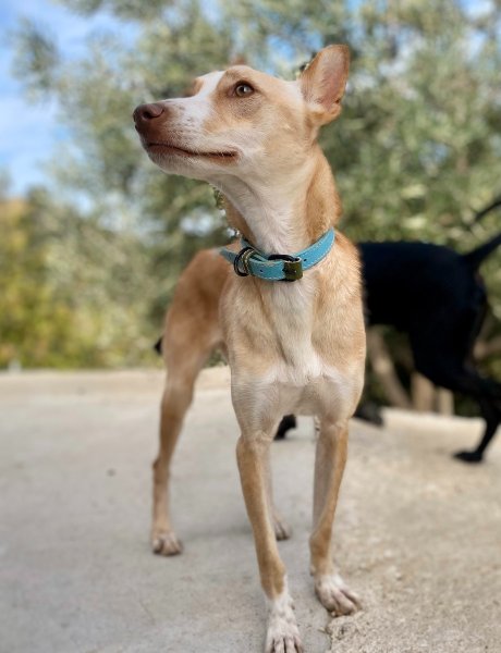 Joya is erg onderdanig, sociaal, lief, maar niet speciaal speels. Ze is heel goed met sommige honden en negeert andere honden. Ze zou met andere honden kunnen samenleven, maar ze heeft niet echt honden in huis nodig, dus ze kan ook “alleen hond” zijn.