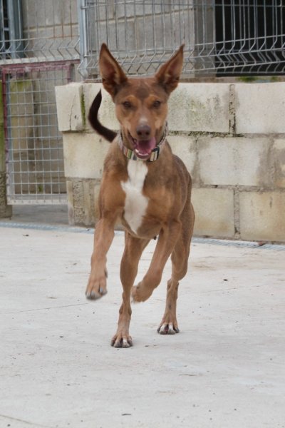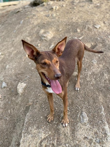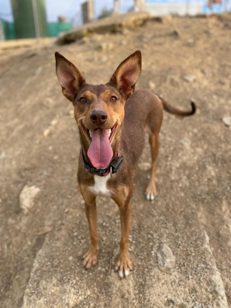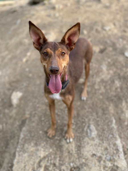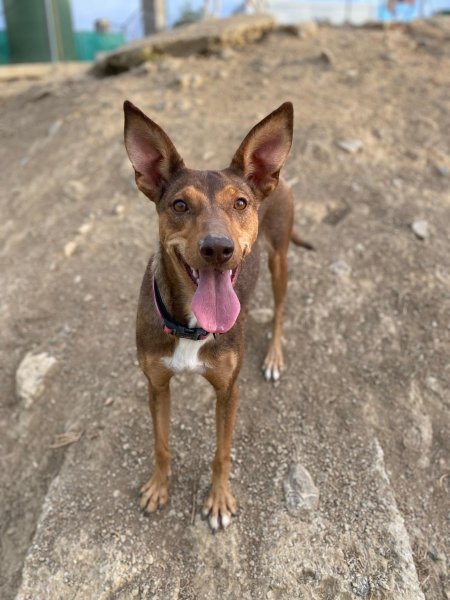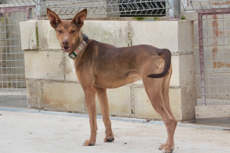 Update 26 februari 2026: Rihanna is een paar weken geleden gesteriliseerd. Ze verbleef in een pleeggezin. Daar was ze rustig, lief, gehoorzaam en zindelijk. Twee weken later keerde ze terug naar het asiel. In het asiel is ze actief (hoewel ze in haar pleeggezin rustig was). Ze speelt graag apporteren, maar vindt het vooral leuk om met andere honden te spelen. Haar vrienden zijn alle honden in het asiel, reuen of teven, groot of klein. Ze is niet bang voor mensen. Ze is erg behendig en kan springen en zelfs klimmen. Ze houdt van wandelen, maar in de natuur kan ze aan de lijn trekken vanwege haar jachtinstinct. In de stad loopt ze beter. Met mensen is ze erg aanhankelijk, vrolijk en speels. Ze kan niet overweg met katten. Wat haar gezondheid betreft, testte ze bij haar laatste controle negatief op alle mediterrane ziekten, behalve op leishmania, waar ze positief op testte, maar met een zeer lage waarde (1/160). Daarom leidt ze een volledig normaal leven en heeft ze geen medicatie nodig, alleen bloedonderzoek. Podenco's zijn vrij resistent tegen leishmania en ontwikkelen soms alleen antilichamen zonder de ziekte ooit te krijgen.