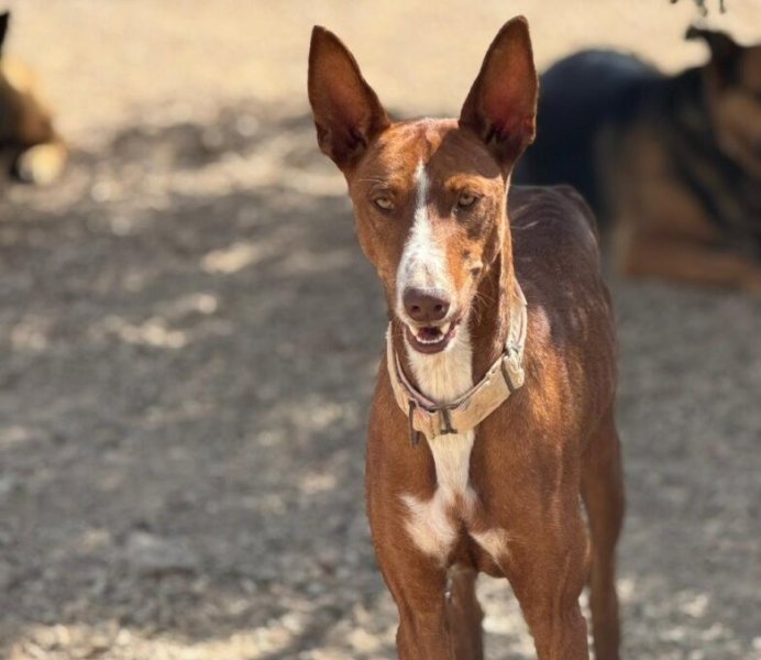 Input 10 februari 2025: Manolo is een echte George Clooney onder de podenco’s, wat een verschijning! Hij heeft echt die blik... die meteen je hartje verovert. Maar ook zijn heerlijk gek karakter en zijn gevoel voor humor zorgen ervoor dat je met hem om je heen niet anders kan dan lachen. Deze clown is komisch, lief en zijn gekkigheid is hoogst besmettelijk!