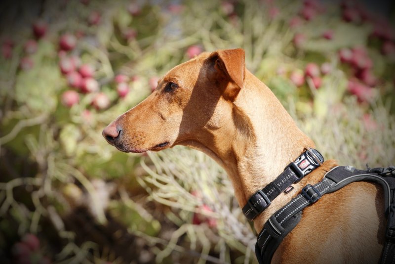 Buiten is Pinzon helemaal blij. Dan geniet hij met volle teugen van de buitenwereld. Elk geurtje, elk bosje, elk hoekje wordt nieuwsgierig onderzocht. Hij wil dan heel graag de wereld ontdekken, rennen, spelen... en het liefst met "zijn" mens, diegene die aan de andere kant van de riem loopt!