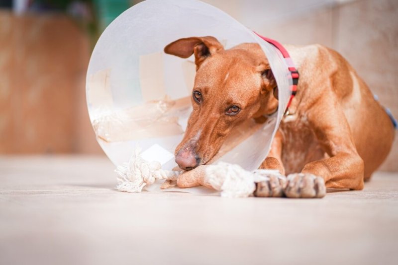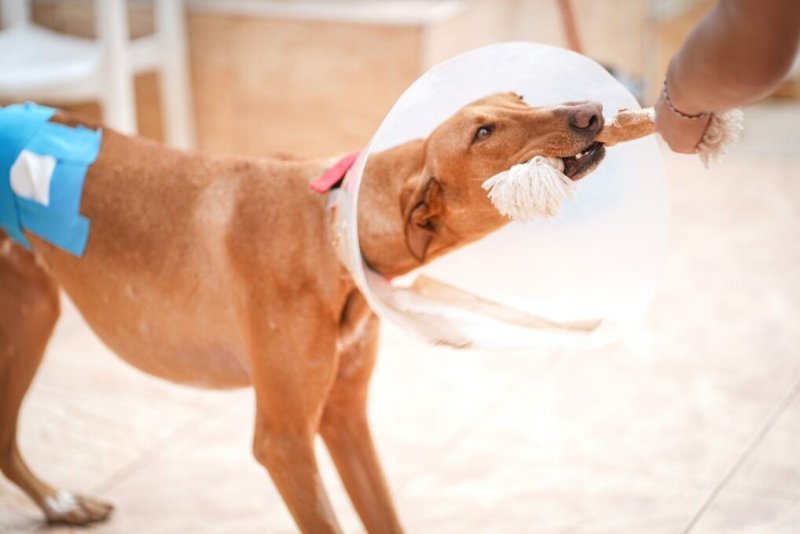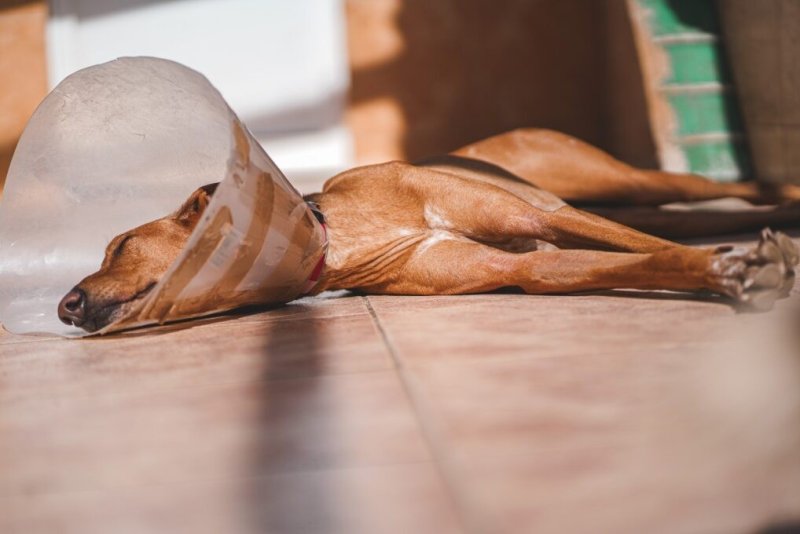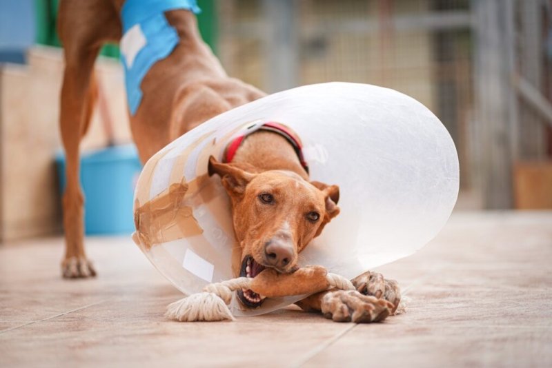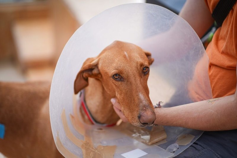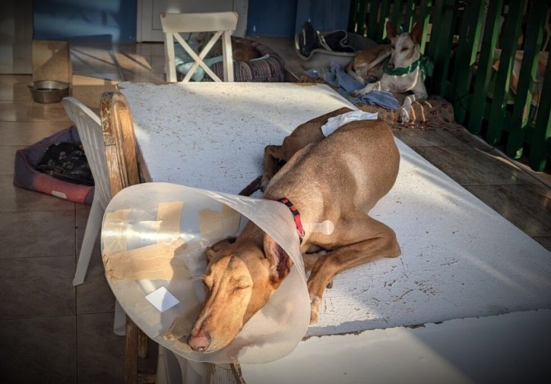 Omdat hij onder de wondjes zat toen hij bij ons kwam mocht hij tijdelijk bij ons in het woonverblijf. Hij heeft een poos met een kap rondgelopen de arme ziel maar ook dit liet hij zonder spanning toe. Het was alsof het altijd al deel van zijn grote lichaam was geweest. Ondanks dat hij tegen elke tafel en deur liep, schudde hij zich even uit en ging hij gewoon weer verder. Het was best komisch om hem te zien liggen in dat kleine beetje zonneschijn, boven op de tafel, met zijn kap richting de zon en zijn oogjes dicht. Maar ook de kattenmanden wist hij in te kruipen, zelfs met de kap!