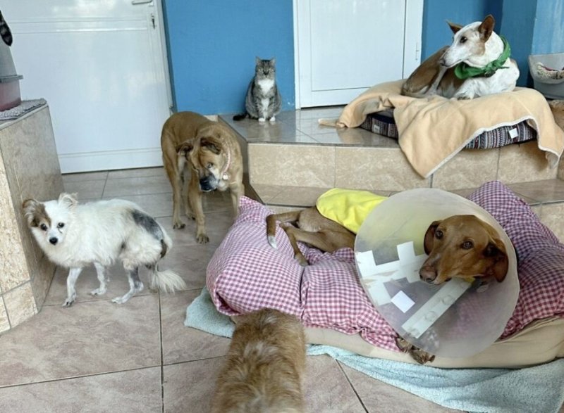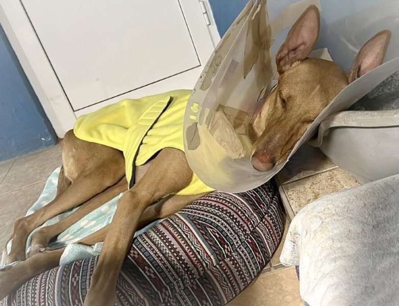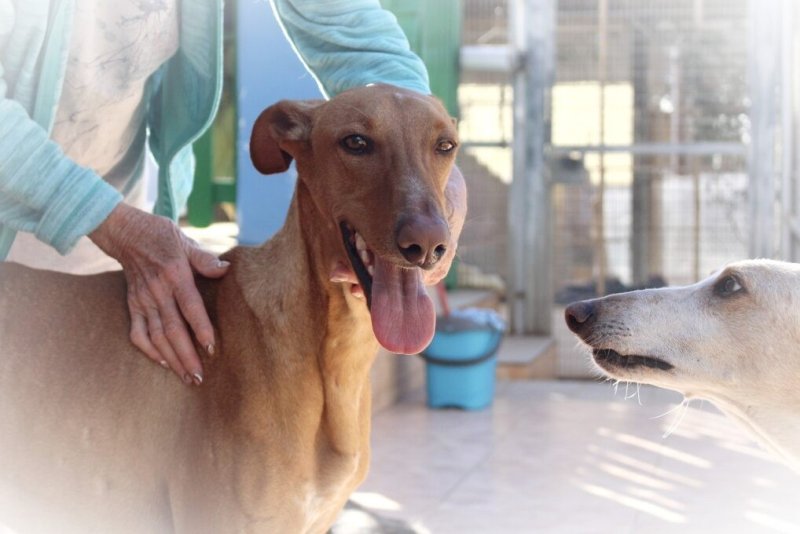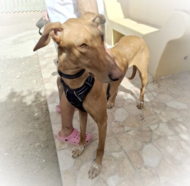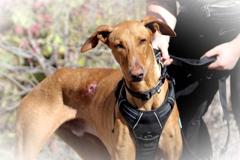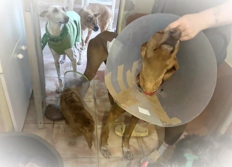 Pinzón namen we over van een ander asiel omdat hij daar in de groep werd aangevallen. Met zijn "sullig" en zacht karakter werd hij continue de hoek in gestuurd en zelfs gebeten. Hij zou nooit zijn plek claimen of terugbijten dus het was letterlijk een kwestie van leven of dood.