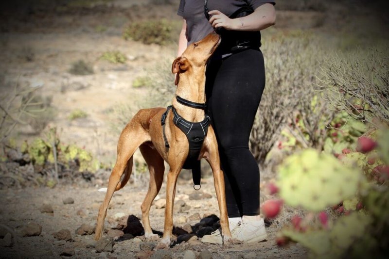 Pinzon laat in de bergen wel jachtinstinct zien. Dan wordt hij enthousiast en gaat hij sporen volgen. Als je hem dan bezighoud of aan een korte riem is hij snel weer bij je maar hier moet wel rekening mee gehouden worden vooral in die prachtige bossen in Nederland waar zeker veel meer interessante luchtjes te vinden zijn. Op straat, aan de normale riem, loopt hij braaf en oplettend met je mee. Dan doet hij zijn best om te zien wat er van hem wordt verwacht terwijl hij nieuwsgierig maar rustig nieuwe indrukken opneemt.
