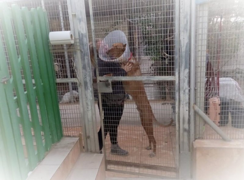 Het is een genot om deze onschuldige clown om je heen te hebben. Zo veel liefde, zo veel levenslust en zo zacht met alles en iedereen. Daarom verblijft hij nog steeds bij ons in het verblijf ondanks dat zijn kap en extra verzorging door de wondjes inmiddels verleden tijd zijn. We kunnen hem nou gewoon niet in een patio doen, stiekem vinden we het te gezellig voor ons zelf maar ook zielig voor deze zachte vent. Hij doet het hier zo goed, in een huiselijke omgeving, met onze routine, en ook met al de honden en katten. Hij geniet duidelijk zo enorm van onze beetjes extra aandacht dat we hem dat gewoon niet kunnen ontnemen nu ondanks dat we de plek hier hard nodig hebben.