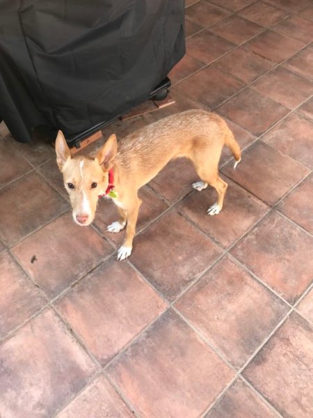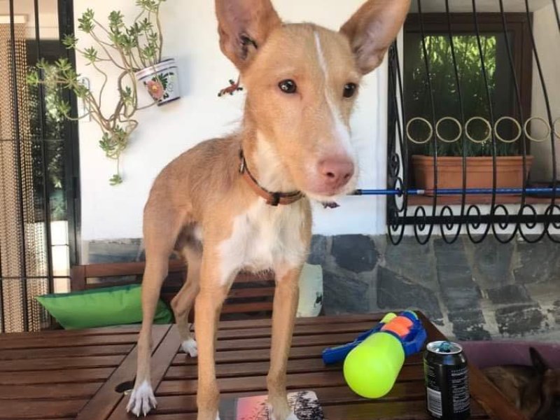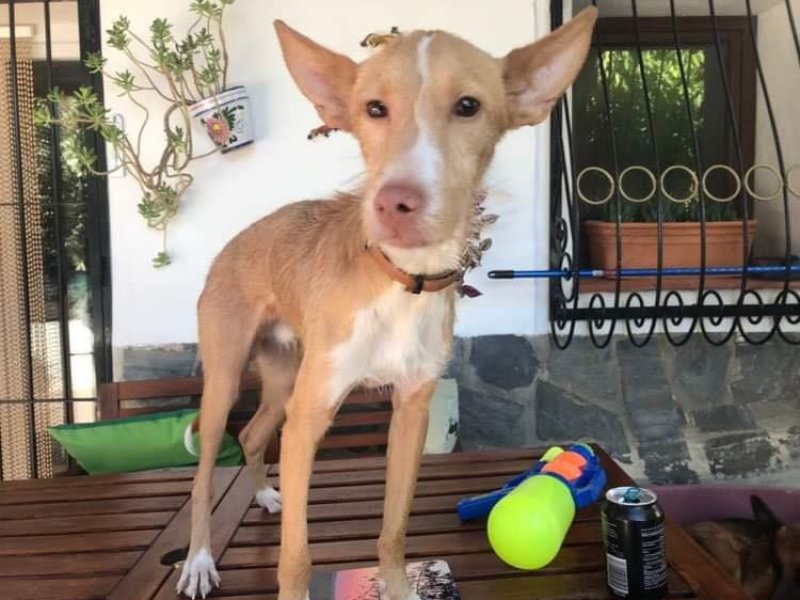 Freddy is een geweldige Podenco Andaluz die op 5 november 2024 werd gered. Hij werd alleen gevonden in de velden bij Alhama de Granada, mager en rillend van de kou. Dankzij de liefdevolle zorg en goede voeding van zijn opvanggezin is hij op gewicht gekomen en een zelfverzekerde, vrolijke hond geworden.