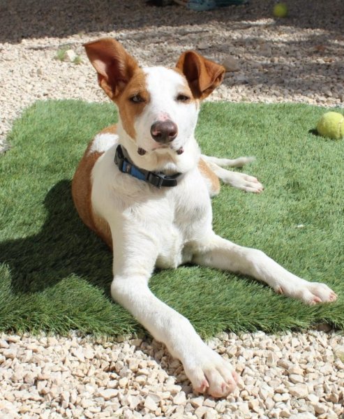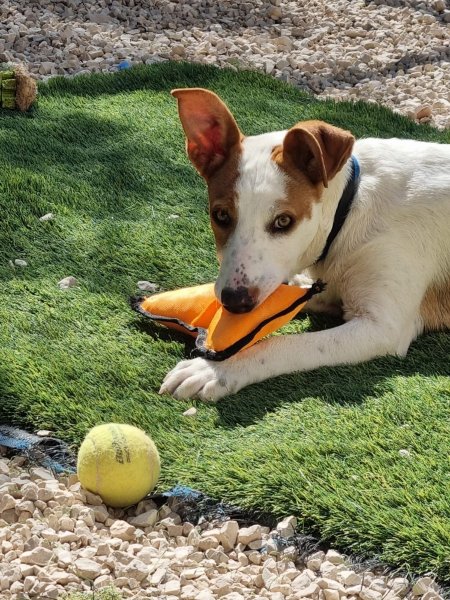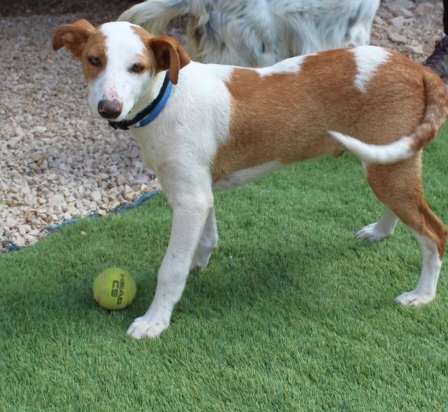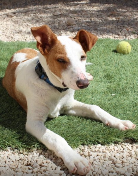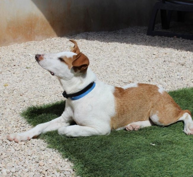 Input 12 mei 2025: Tintin is nog een jonkie. Het is is onbekend wie zijn vader is. Waarschijnlijk was dat geen podenco want zoals je ziet is Tintin wat ‘voller’ in zijn gewicht dan de doorsnee podenco. We weten dat Tintin zijn moeder wel een echte podenca is, wat Tintin een enorme snoezig mixje maakt.
