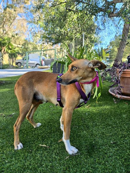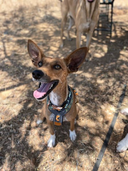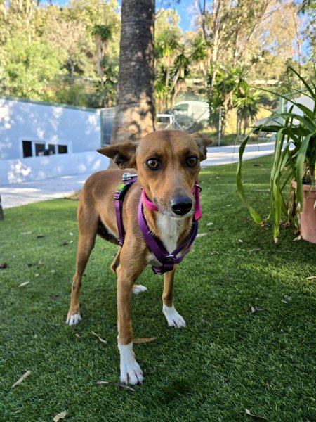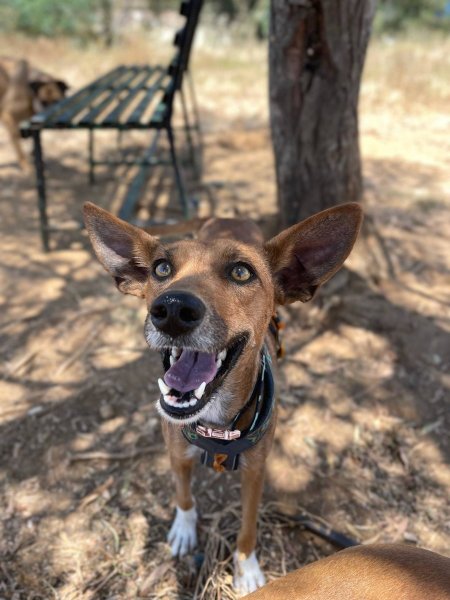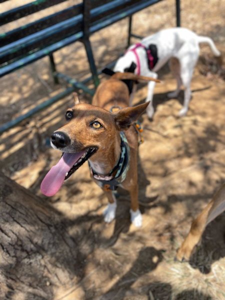Farah is een Podenco met een sterk karakter: slim, dapper en nieuwsgierig, met een duidelijk jachtinstinct. Tegelijk is ze ook ontzettend aanhankelijk en lief. Ze komt graag zelf naar je toe voor een knuffel of om gewoon dichtbij te zijn. Ze is sociaal, zoekt contact en is duidelijk op haar gemak bij mensen die haar met zachtheid benaderen. Farah leeft met andere honden samen en dat gaat goed. Ze zoekt het gezelschap van andere honden op, maar zou het ook prima vinden om als enige hond in huis te zijn. Ze is lief voor kinderen en houdt van zachte aandacht. Een huishouden met katten of kleine dieren raden we echter af, vanwege haar jachtinstinct. Ook kippen, paarden of wild kunnen een sterke reactie bij haar oproepen. Ze heeft waarschijnlijk geen makkelijke start gehad in het leven. Ze kan nog schrikken van harde stemmen of dreigende bewegingen, wat erop wijst dat ze in het verleden mogelijk slecht is behandeld. Toch is ze inmiddels een stuk zelfverzekerder geworden en laat ze zien hoeveel liefde ze in zich heeft.