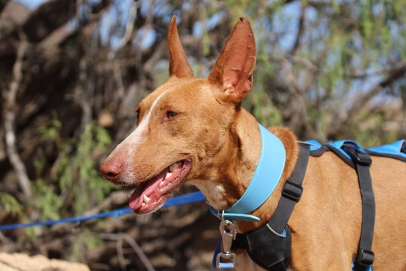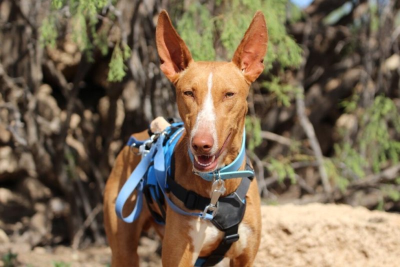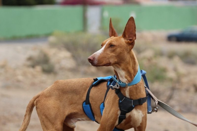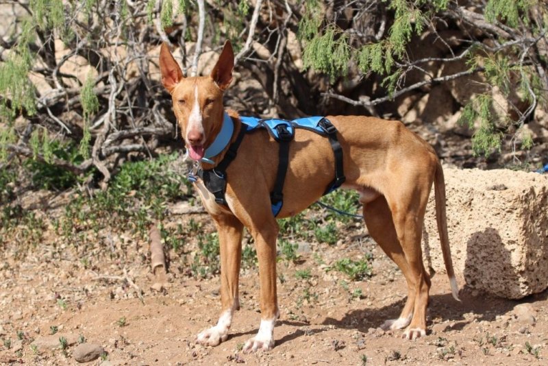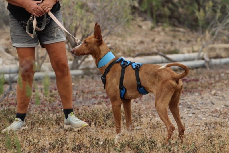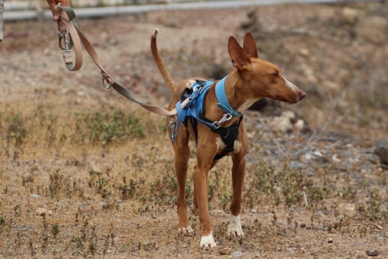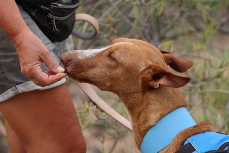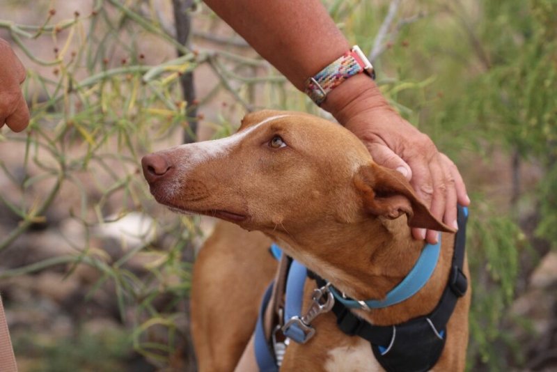 Diego is ontzettend goed met andere honden. Hij is speels en weet precies hoe hij uit de problemen blijft in de groep. Hij kent de hondentaal als de beste en geniet van zijn maatjes. Als ze hem uitdagen staat hij altijd klaar voor een spelletje of een sprint! En ook voor ons. Als hij de riem ziet wordt hij helemaal blij en hij laat zich netjes aanlijnen. Aan de korte riem loopt hij netjes en oplettend mee. Veel verkeer, drukte of lawaai vindt hij nog spannend, hier moet hij nog voorzichtig aan wennen.