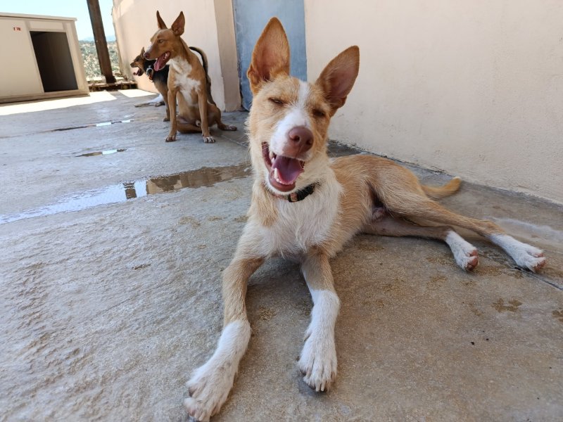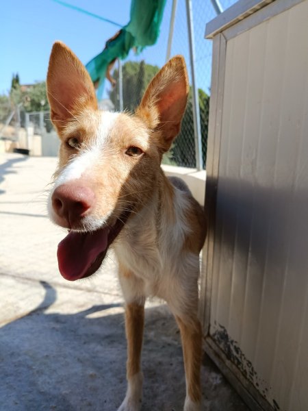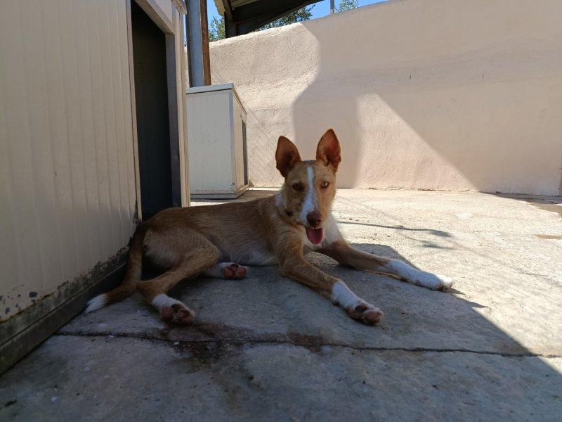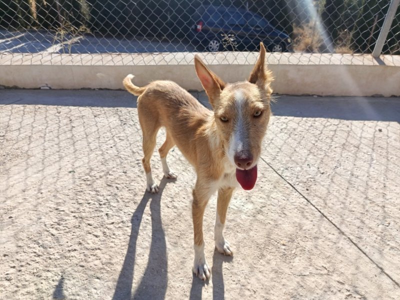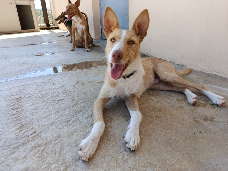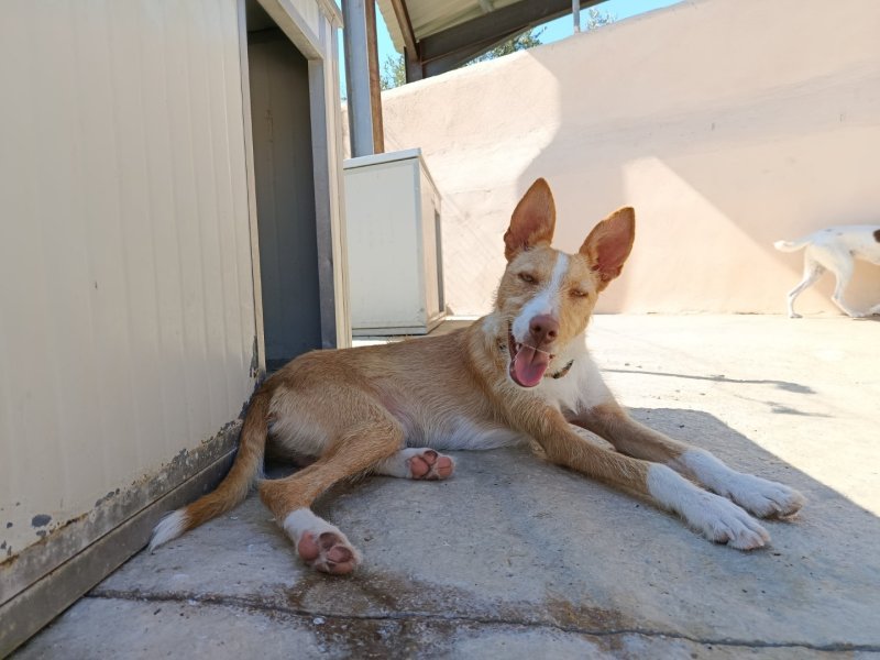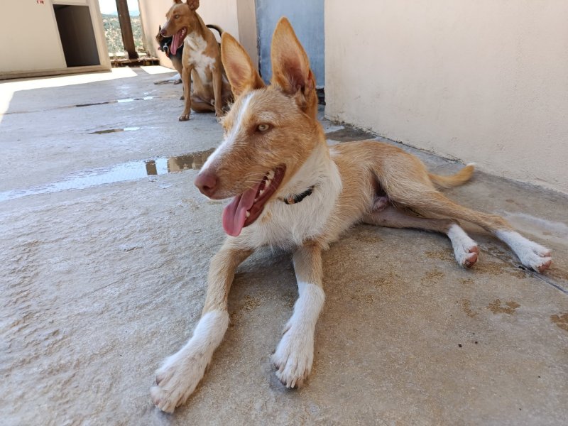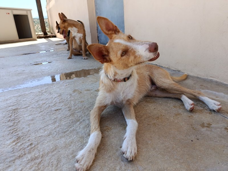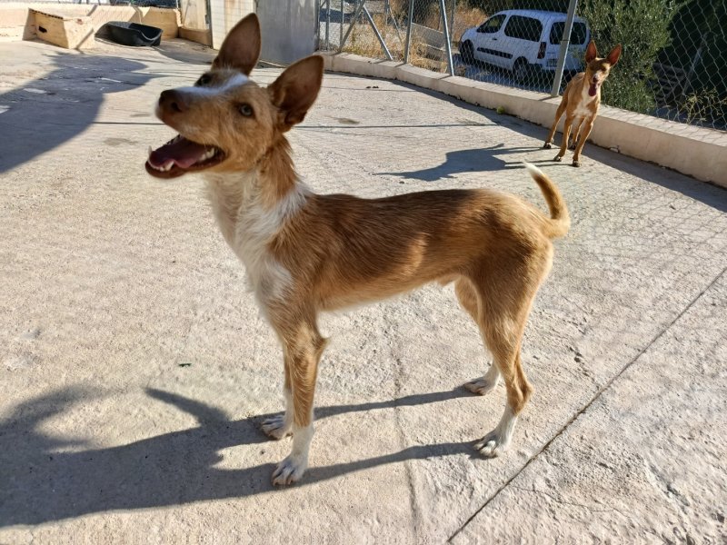 Xenron is een knappe, jonge podenco van nog net geen jaar oud. Volgens de dierenarts wordt hij volgende maand (september) 1 jaar. Dit is volledig in lijn met zijn gedrag en persoonlijkheid. Een echte pup nog, vol levenslust, ontdekkingsdrang en speelse energie! Hij kijkt met grote nieuwsgierigheid naar de wereld om zich heen en beleeft alles met enthousiasme, blije sprongen en een kwispelende staart.