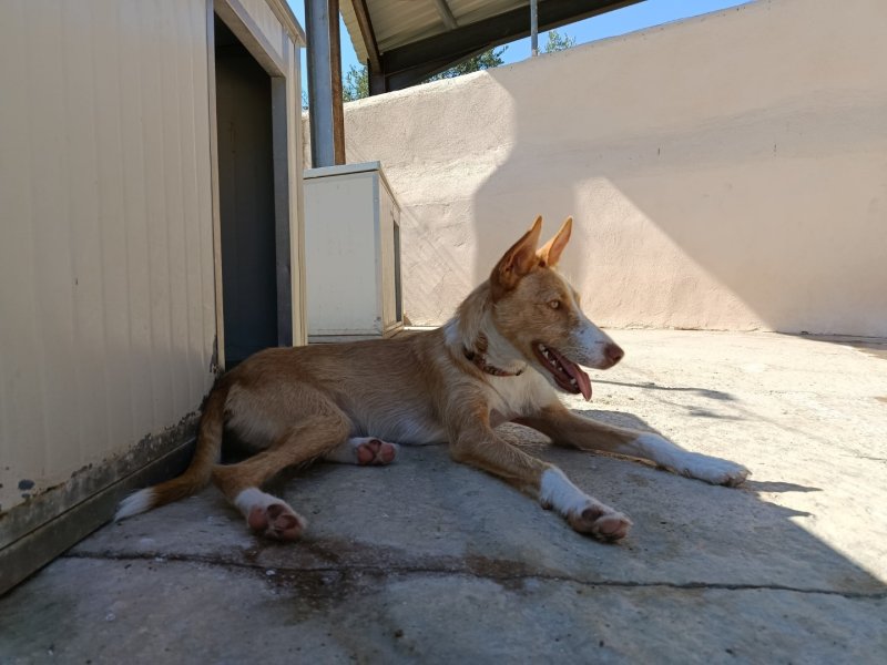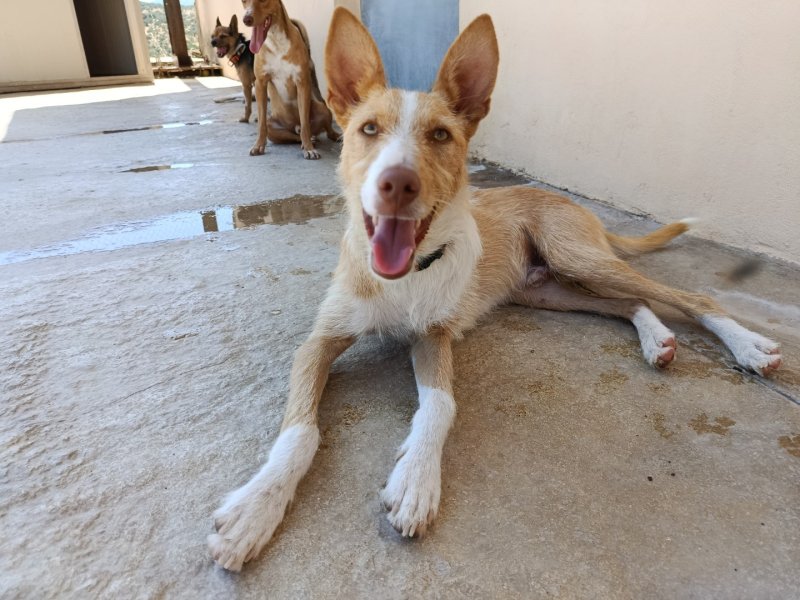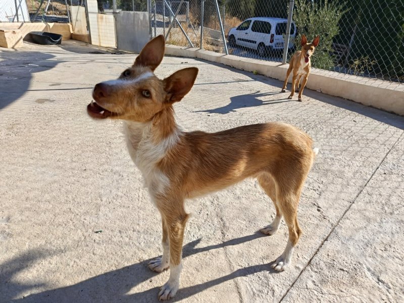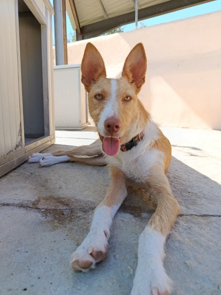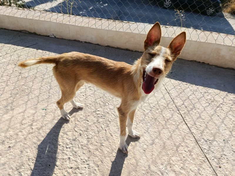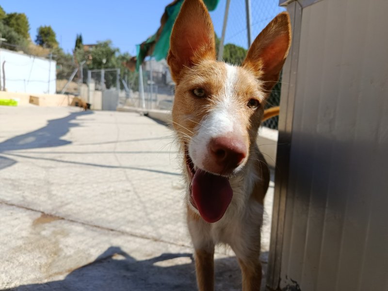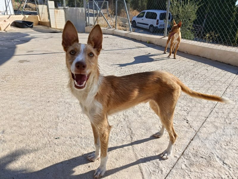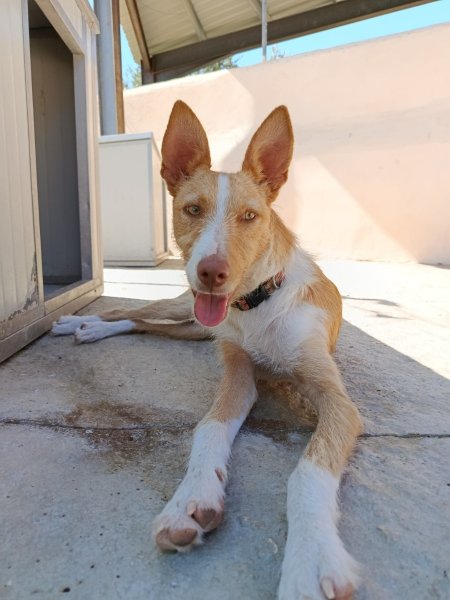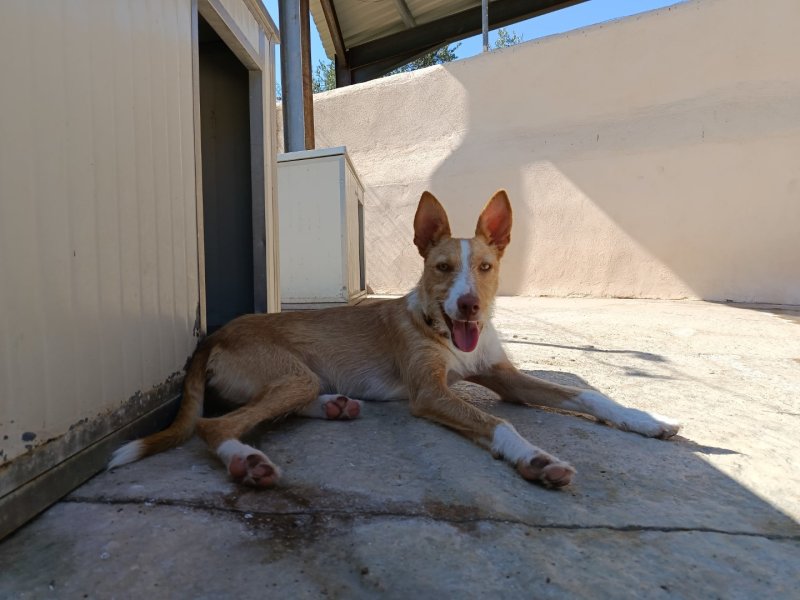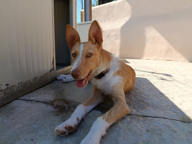 Xenron is een knappe, jonge podenco van nog net geen jaar oud. Volgens de dierenarts wordt hij volgende maand (september) 1 jaar. Dit is volledig in lijn met zijn gedrag en persoonlijkheid. Een echte pup nog, vol levenslust, ontdekkingsdrang en speelse energie! Hij kijkt met grote nieuwsgierigheid naar de wereld om zich heen en beleeft alles met enthousiasme, blije sprongen en een kwispelende staart.