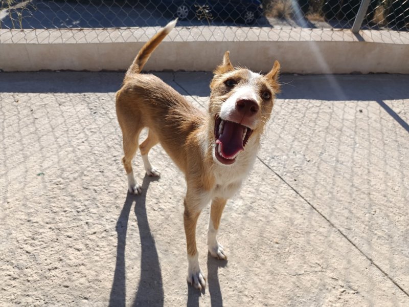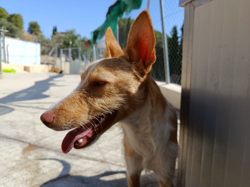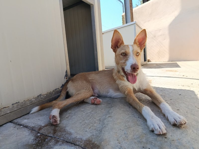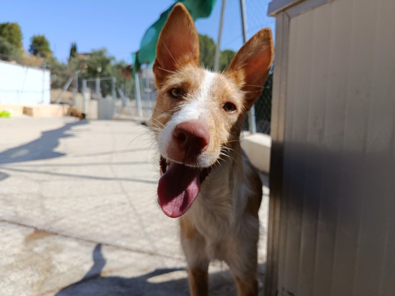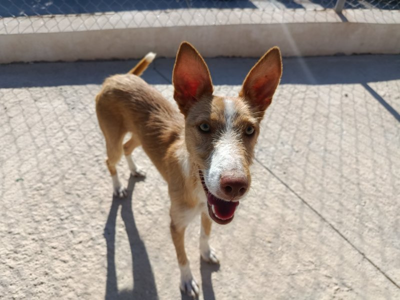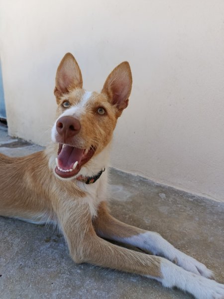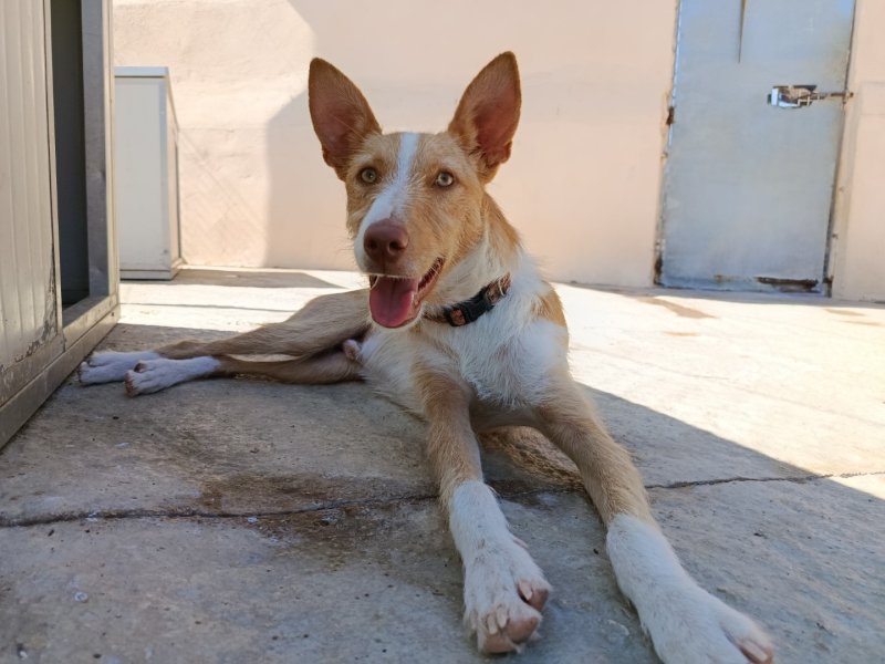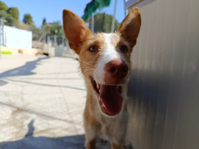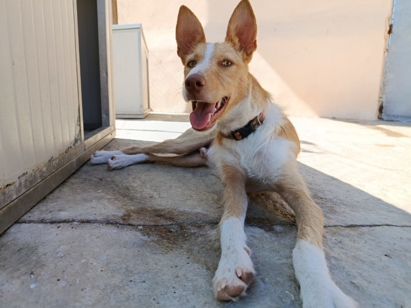 Xenron is een knappe, jonge podenco van nog net geen jaar oud. Volgens de dierenarts wordt hij volgende maand (september) 1 jaar. Dit is volledig in lijn met zijn gedrag en persoonlijkheid. Een echte pup nog, vol levenslust, ontdekkingsdrang en speelse energie! Hij kijkt met grote nieuwsgierigheid naar de wereld om zich heen en beleeft alles met enthousiasme, blije sprongen en een kwispelende staart.