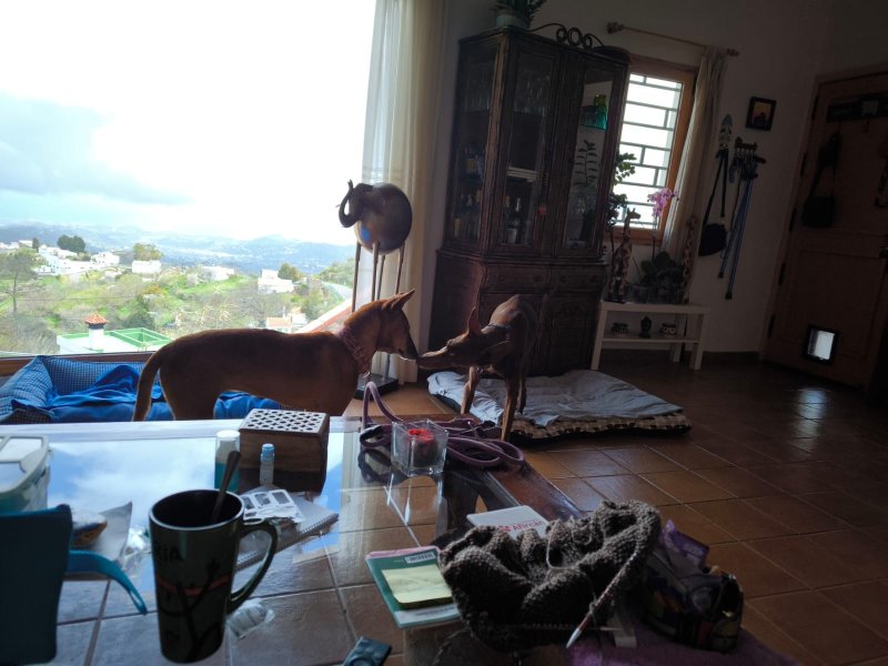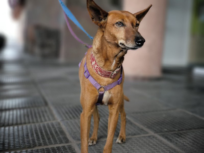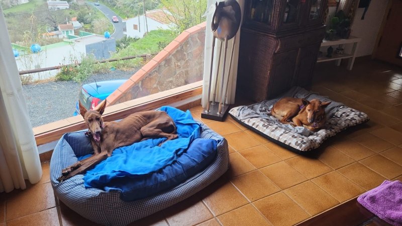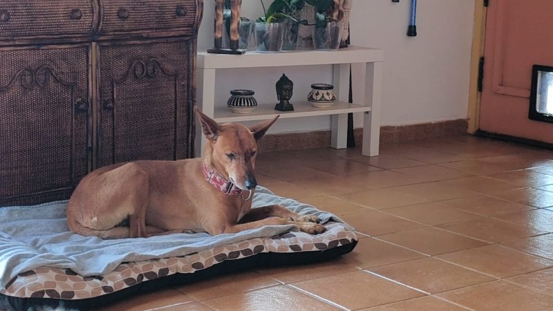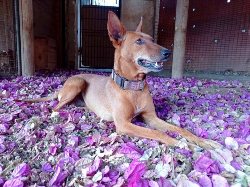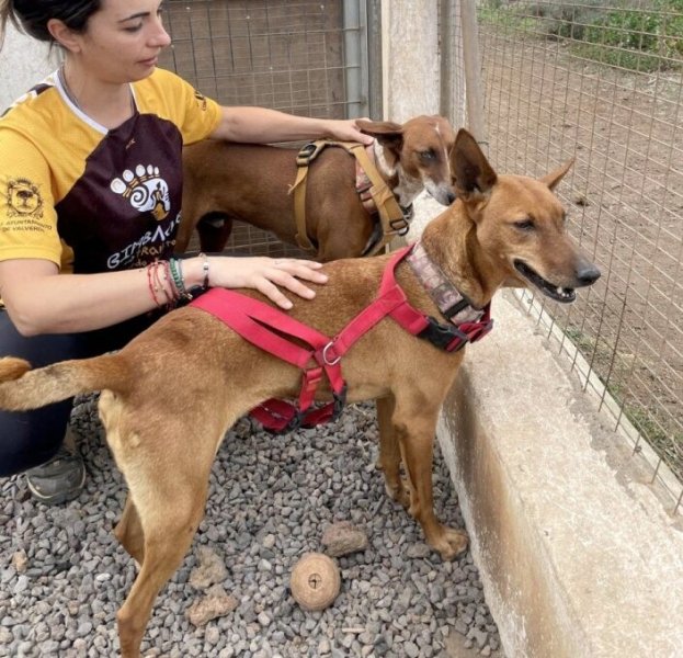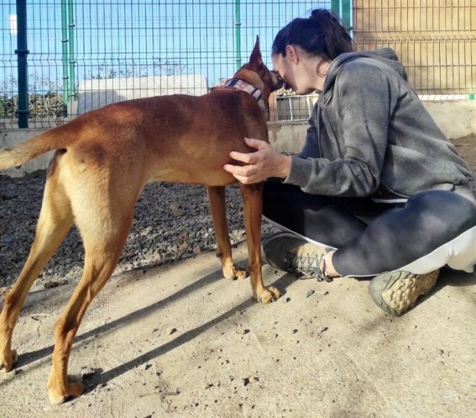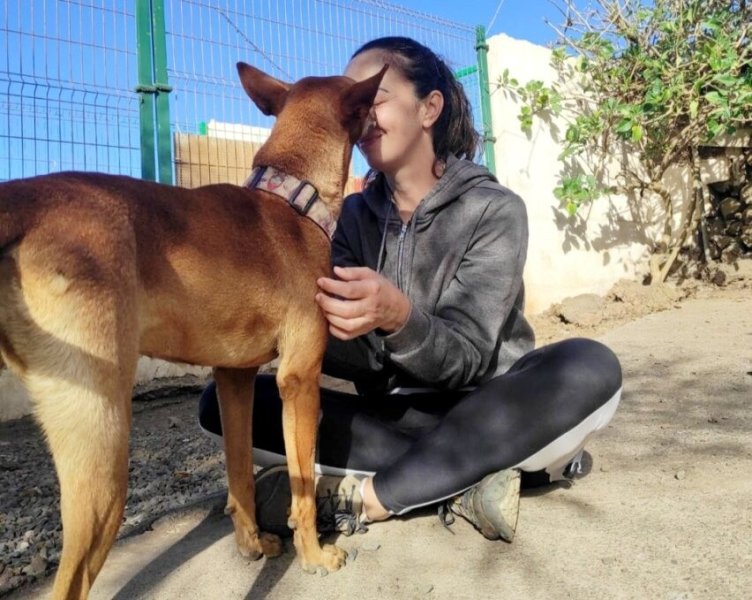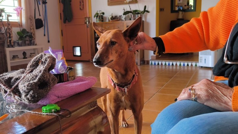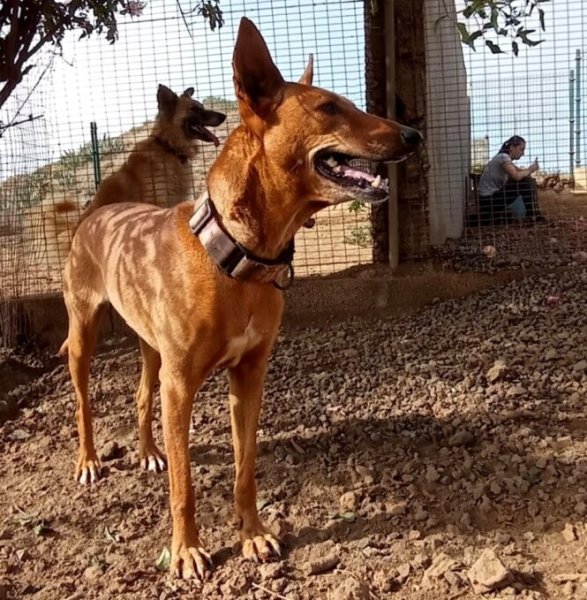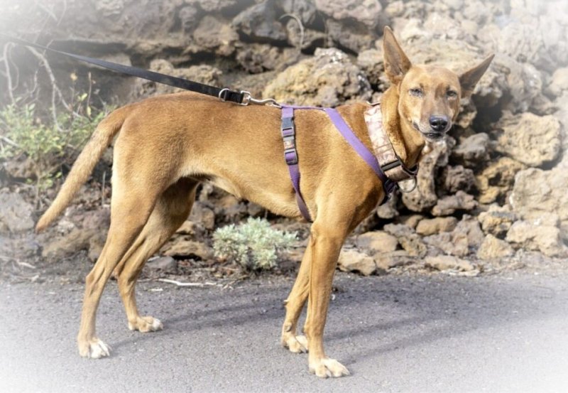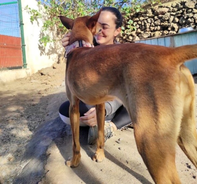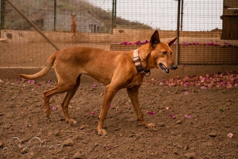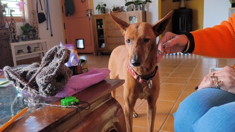 Laila kwam vanuit Gran Canaria, een ander eiland. Ze werd weggenomen door de politie bij een jager die maar liefst 90 podenco’s in de meeste verschrikkelijke condities had. Haar littekens en ook haar rugzakje laten zien hoe zwaar haar verleden was.