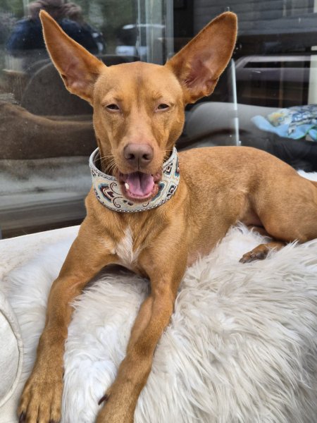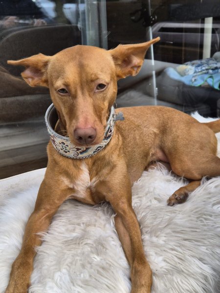 Dit knappe Podenco meisje, van 2.5 jaar jong, is als jonge pup in Spanje cadeau gedaan aan een oudere man. Hier had de beste man helaas zelf weinig behoefte aan, waardoor Gaia voornamelijk in een afgesloten kamer zat en stil moest zijn. Dit is natuurlijk enorm stressvol voor een Podenco pup, wat ook te merken was aan haar toen ze uiteindelijk in het asiel terecht kwam, ze zat vol spanning. Ze heeft hier het pup zijn helemaal ingehaald en speelde het liefst de hele dag met de andere honden en de vrijwilligers in het asiel.