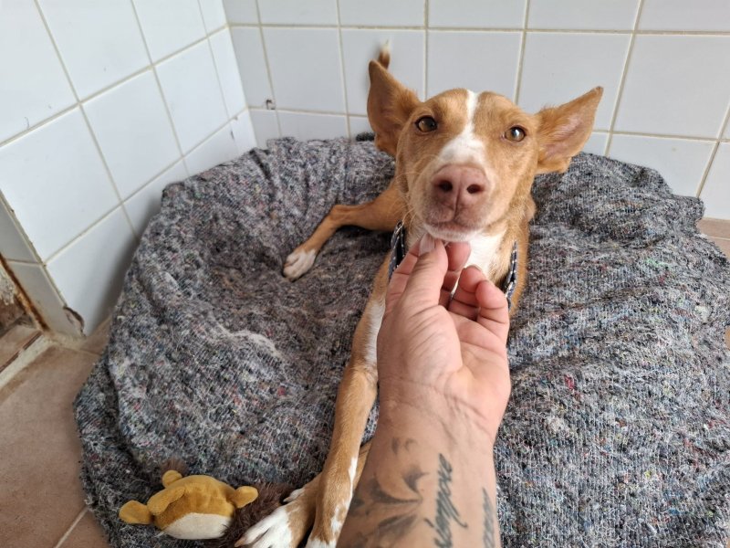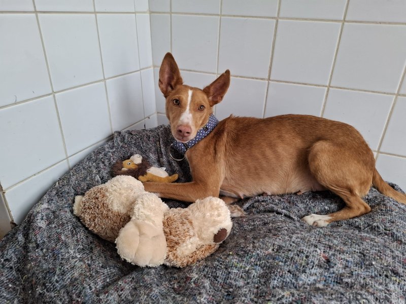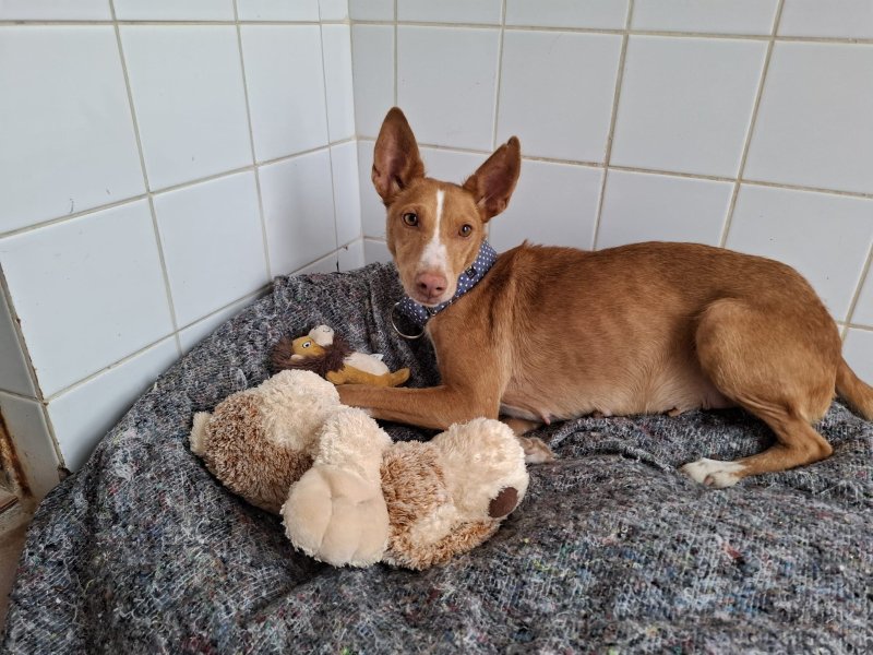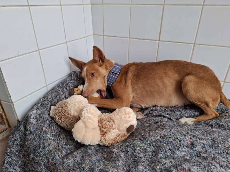Input 1 oktober 2025: Mercedes werd op straat gevonden met vijf hele jonge puppies. Ze is echt het meest lieve hondje wat je je maar kan bedenken. Maar ze was geen goede moeder; we hebben de pups moeten weghalen omdat ze er te agressief mee was. Mercedes is echt een mensen hondje, wilt constant bij je knuffelen, aandacht van je, op je schoot liggen, alles om maar liefde te krijgen. Ze loopt perfect mee aan de riem. Ze kan niet met katten of andere honden, dus moet alleen geplaatst worden.