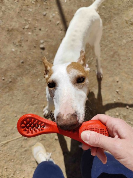 Voor Bones geven we de voorkeur aan een huis zonder andere reutjes. Hij is erg lief en kan prima met een teefje samenleven. In het begin kan hij wel jaloers worden als er genegenheid bij betrokken is. Hij is altijd op zoek naar knuffels en kusjes.