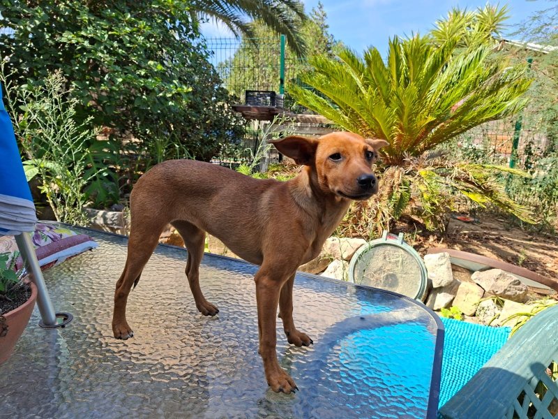 Input 28 oktober 2025: Molly en Holly werden achtergelaten in een doos op straat, op een rustige plek met alleen maar velden in de buurt. Molly is wat actiever dan haar zusje. Het zijn allebei erg lieve puppy's, ze zijn altijd blij om de katten te zien en proberen met ze te spelen. Met de andere honden zijn ze speels. Ze kennen alle soorten honden, klein en groot, jong en oud. Met mensen zijn ze een beetje verlegen, maar wel lief. Ze zijn niet gewend aan veel mensen, dus ze zijn een beetje voorzichtig. Ze zijn meestal bij Rocio thuis met de andere dieren, soms voor afspraken bij de dierenarts in de stad, maar ze moeten veel leren. Alles wat een puppy moet leren in zijn nieuwe omgeving. Ze zullen blij zijn als er al een andere hond of een hond-vriendelijke kat in het gezin is. Molly zit nu in een pleeggezin met 25 andere honden en katten. Omdat ze nog zo jong is, is Molly nog niet gesteriliseerd en zijn er nog geen bloedtesten gedaan.