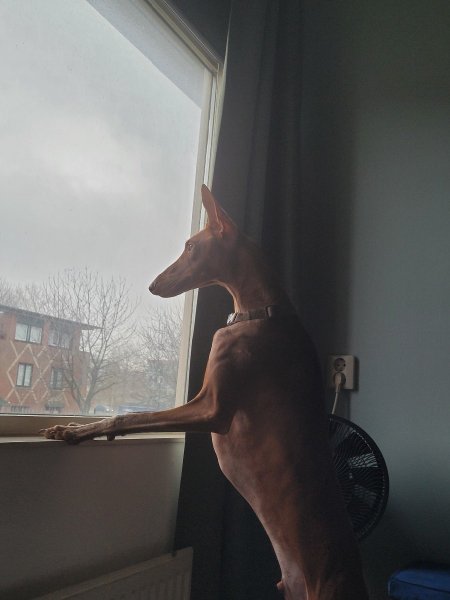 Hij is gezond, kan met kinderen en met honden, en kan alleen thuisblijven. Autorijden gaat goed zolang hij kan liggen of ergens in zit, anders wordt hij misselijk. Een tuin is voor hem gewenst.