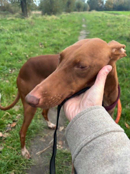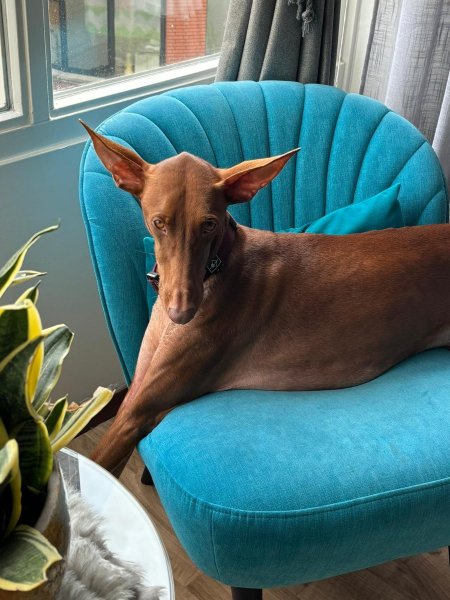 Saul is een vriendelijke, gevoelige Podenco Canario met prachtige, gouden ogen en een zacht karakter. Hij leefde lange tijd samen met een oudere podenco-teef, met wie hij een hechte band had. Nadat zij verhuisde, merkte zijn huidige eigenaar dat hij zonder hondenmaatje minder goed in zijn vel kwam te zitten. Het is duidelijk dat Saul graag samenleeft met een andere hond en dat hij daar veel steun en plezier aan heeft.