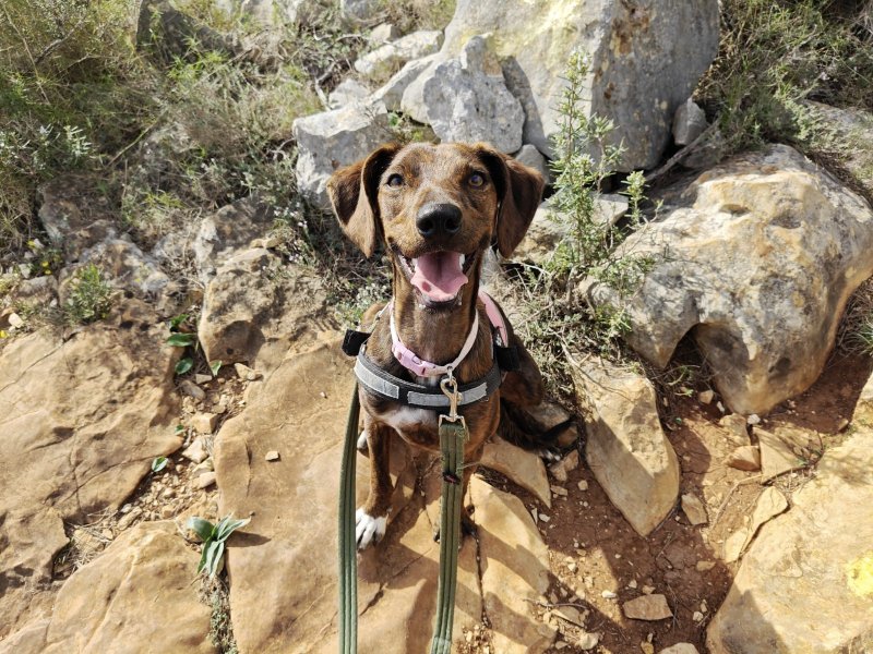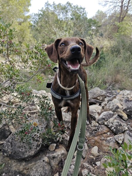 Qua looks is Luisa niet de standaard Podenco, ze is een mixje. Maar tijdens een wandeling laat ze zien dat ze toch zeker voor 75% Podenco in zich heeft! Inclusief grappige capriolen en best wat jachtinstinct.