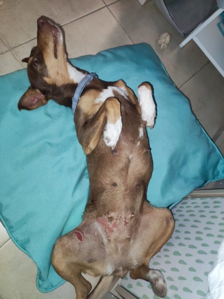 Input 21 november 2025: Torcal werd met haar puppy gevonden op een weg in de buurt van Antequera, ernstig ondervoed en zwaargewond na een aanrijding. Gelukkig greep een engel in. Ze is nu volledig hersteld van haar verwondingen en heeft gelukkig geen blijvende gevolgen of blijvende schade.