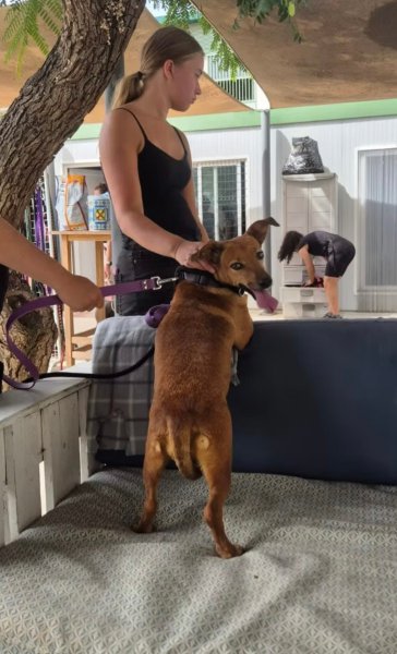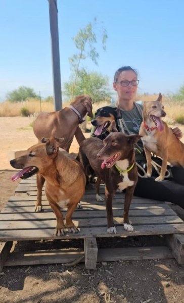 Elke is bij ons inmiddels de verzorgster/moeder van een roedel van 7 honden. Ze steunt de angstige hondjes en houdt de sfeer goed. Een kleine bazin met een groot hart!