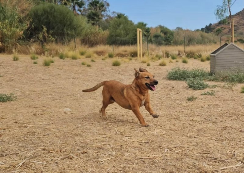 De honden met wie ze nu samenwoont steunen elkaar, ze zijn goed gehumeurd en altijd happy als ze samen aan de wandel gaan. Elke komt dan graag een aai halen bij onze vrijwilligers, maar ze wijkt nooit ver van haar vriendjes.