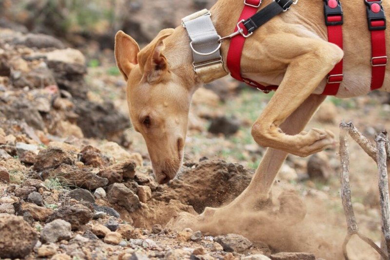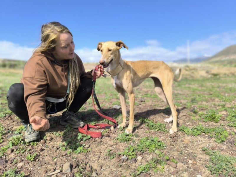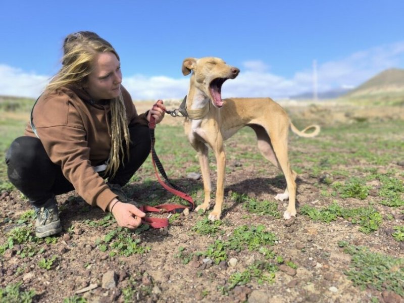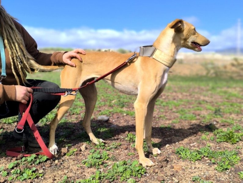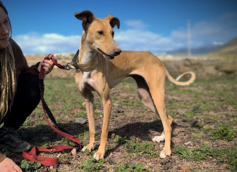Haar jachtinstinct is nog niet erg uitgesproken. Zoals bij veel Podenco's kan dit echter in de komende weken of maanden veranderen naarmate ze zich meer thuis voelt, meer zelfvertrouwen krijgt en zich meer openstelt. Een goede training en voldoende aandacht in het dagelijks leven zijn daarom belangrijk.