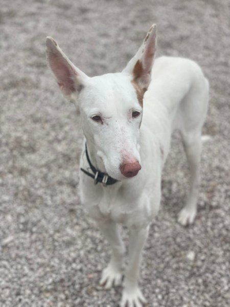 Input 11 februari 2026: Selene is naar de shelter gebracht en wat we zeker weten is dat ze onlangs is bevallen. Haar tanden zijn er slecht aan toe en ze heeft duidelijk een zwaar leven gehad. We weten dat het niet eenvoudig is om een oudere hond in een adoptiegezin te kunnen plaatsen maar hopen dat er nog iemand een plekje op de bank en in het hart heeft voor deze zachtaardige podenco.