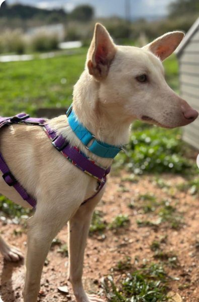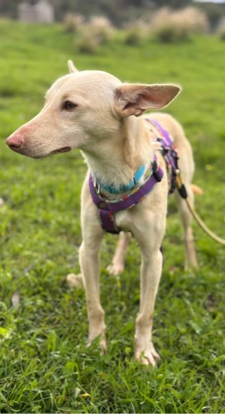 Ik ben een heel lief, gevoelig Podenco-jongetje. Ik hou enorm van rustige aandacht, zachte handen en veel knuffels. Mijn grootste geluk? Wandelen met mijn allerbeste vriendin Rosaria, maar zij is inmiddels gereserveerd. Als we samen wandelden was het alsof we samen één hart deelden.
