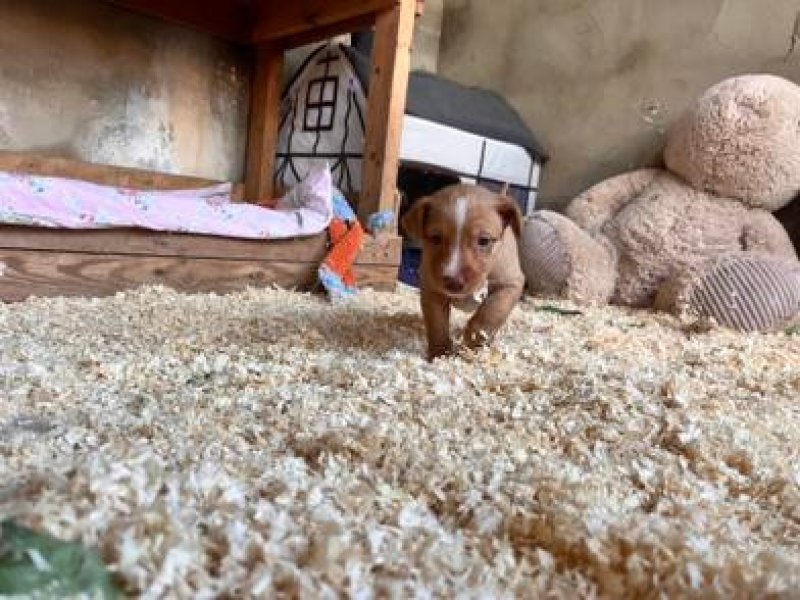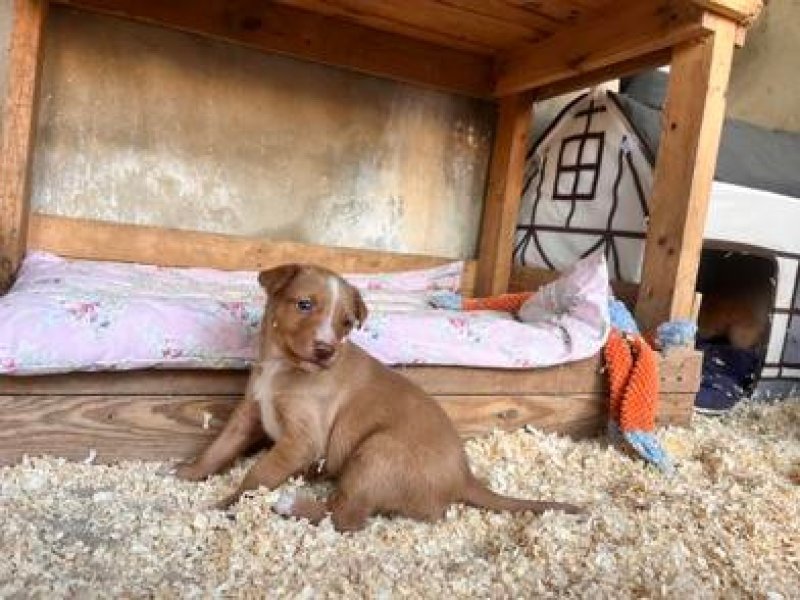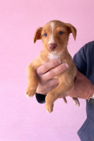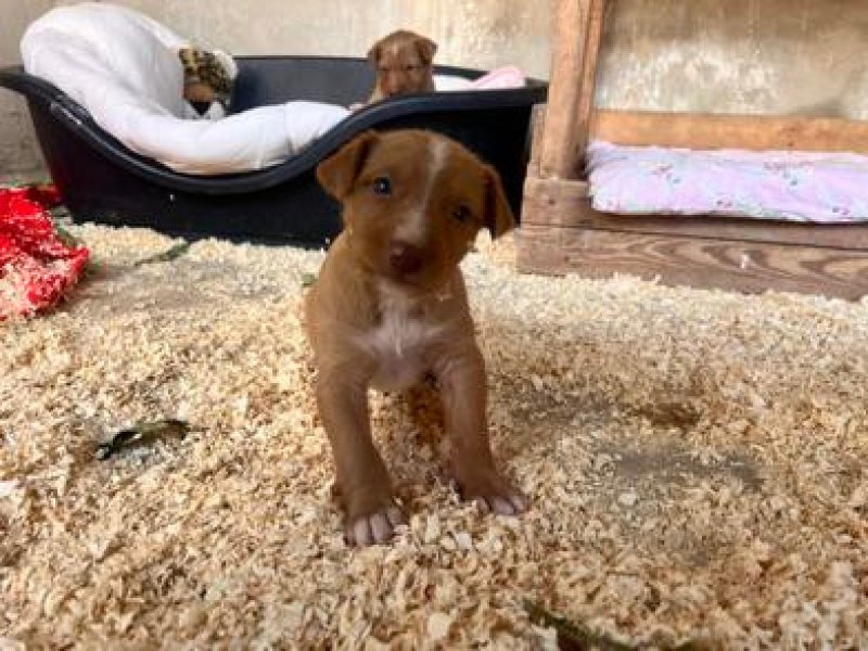 Input 05 maart 2026: Rogan werd gered met haar familie uit een konijnenhol! Haar mama Valentina (14kg) had daar 5 puppies gekregen. We volgden deze podenca al toen ze zwanger was, maar kregen haar pas in onze val nadat ze bevallen was. Omdat we niet wisten waar de pups waren, is moeders daarna weer losgelaten met tracker. En zo volgden we haar naar een veld met konijnenholen. Uiteindelijk hebben we daar de puppies uitgegraven en meegenomen. Ze waren toen al 3 weken oud.