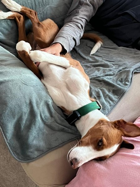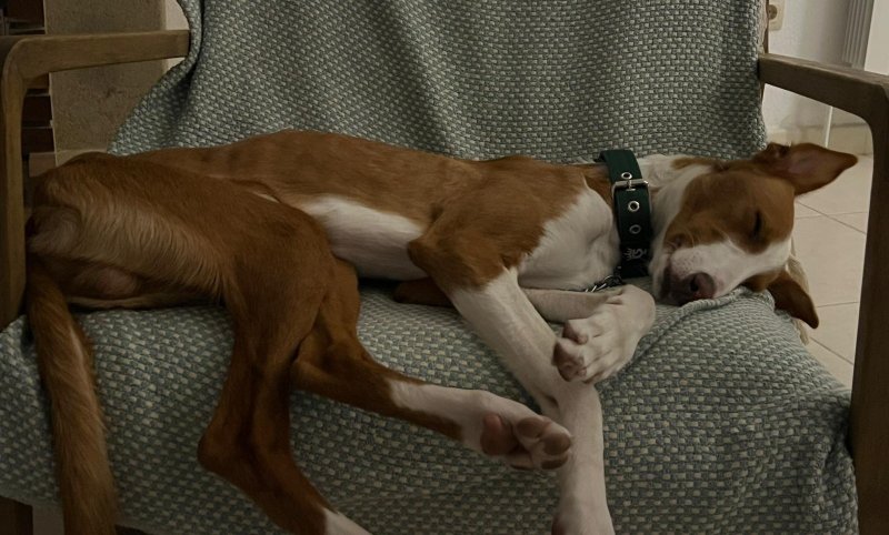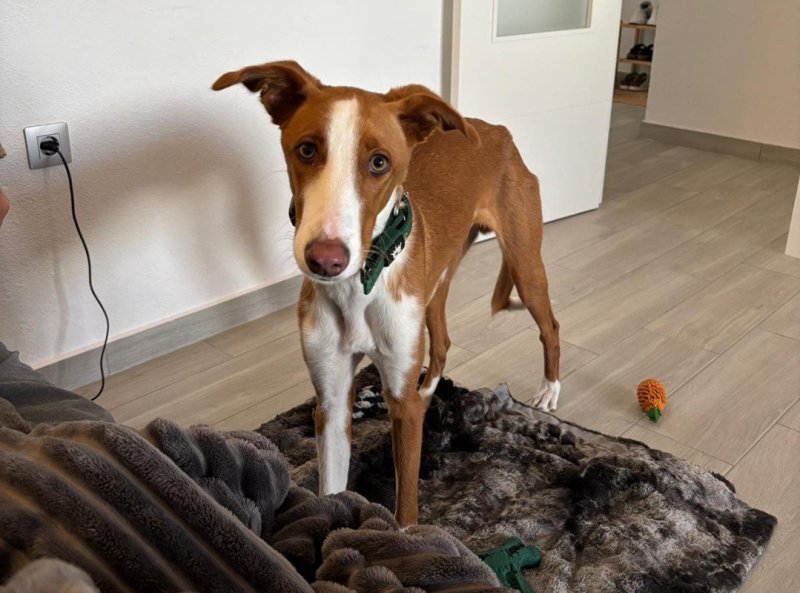Input 5 maart 2026: Tom is samen met vier andere honden naar Albaida perrera gebracht nadat de eigenaar was overleden. Albaida perrera is een van de meest deprimerende asielen hier in de omgeving en APROP besloot hem daar weg te halen, met name omdat hij nog een pup was. Al gauw bleek dat het niet goed ging met Tom, er werd gedacht dat hij rattenvergif had binnen gekregen.