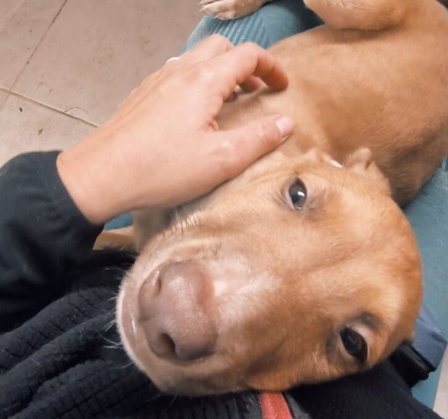 Input 16 april 2026: Vlekkie is bij ons in het asiel geboren. Haar moeder, Violeta, kwam van een jager en werd hoogzwanger binnengebracht. Dit kleintje is makkelijk te herkennen door, jullie raden het al, dat grappige vlekkie op haar neusje! Maar ook qua karakter springt ze er tussen uit... Vlekkie is namelijk een grote knuffelkont. Vandaar dat de foto’s niet echt de beste zijn want madam ligt nergens liever dan op schoot, in je armen of met dat heerlijk neusje recht in je camera. Maar de filmpjes zijn wel heel lief en geven een goede sfeerimpressie van onze knuffel sessies. Als je die blik ziet... kan je gewoon geen nee zeggen, en dat weet ze!
