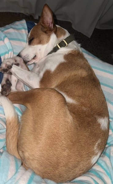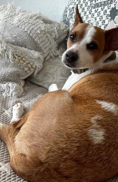 Ze slaapt rustig gedurende de nacht en in de ochtend kijkt ze ernaar uit om wat te spelen en te rennen. Als je aan tafel zit, komt ze in haar mand naast je liggen of kruipt ze naast je op de bank.